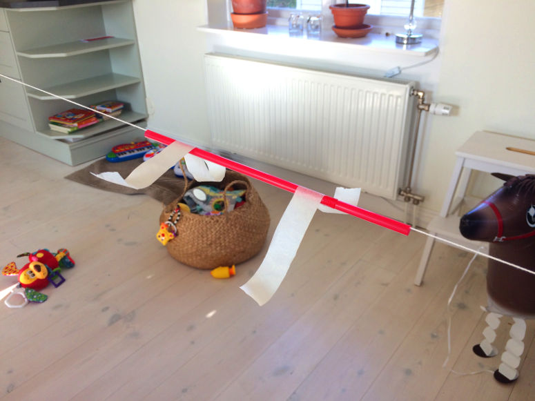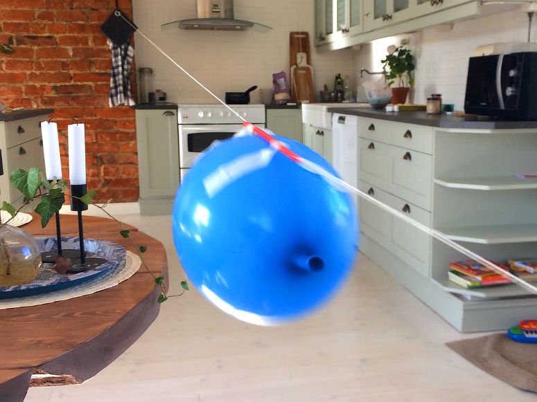 En pysande ballong är väl inte den mest lättstyrda raketen, men med en lina går det faktiskt...som på lina. Detta experiment handlar om Newtons tredje rörelselag.