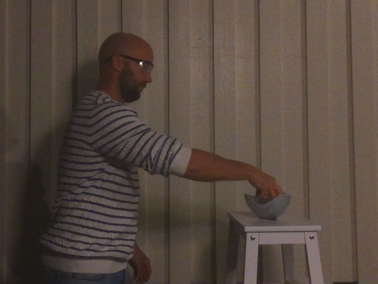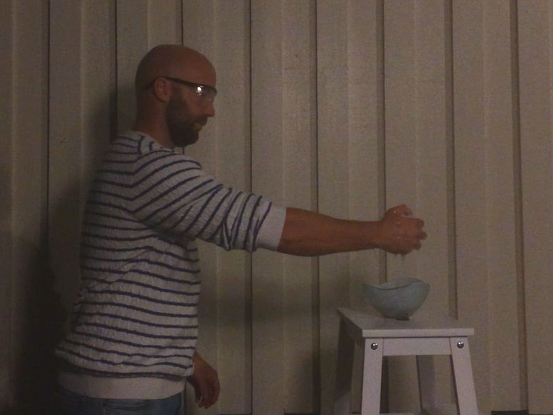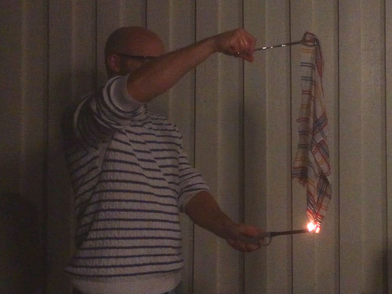 - När du ska tända eld på näsduken: Kontrollera att du inte har någon rödsprit på dig, håll näsduken långt bort från kroppen och skålen med rödsprit, samt håll den över hinken med vatten.