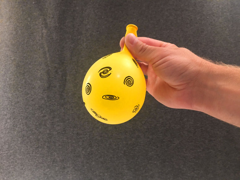 Undersök hur universums expansion går till med hjälp av en ballong och en tuschpenna.