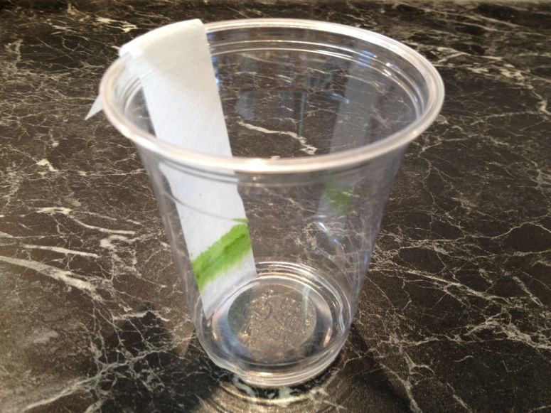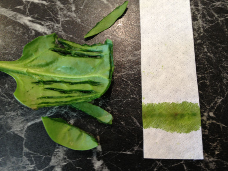 - 1 st spenatblad (eller annat blad med stark färg och lite vatten)