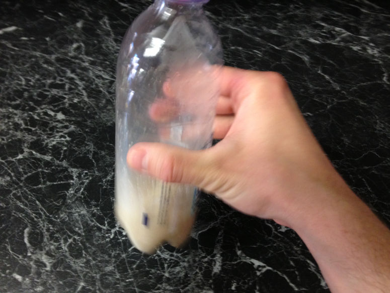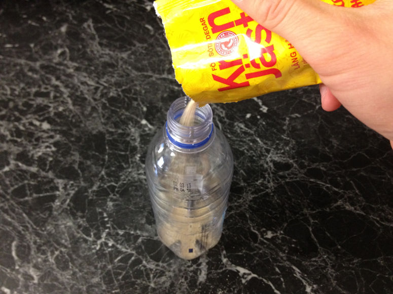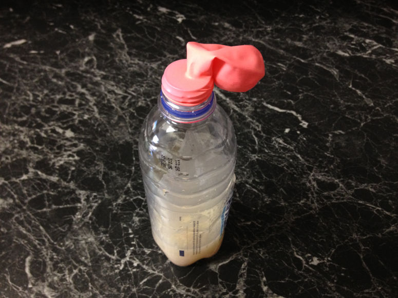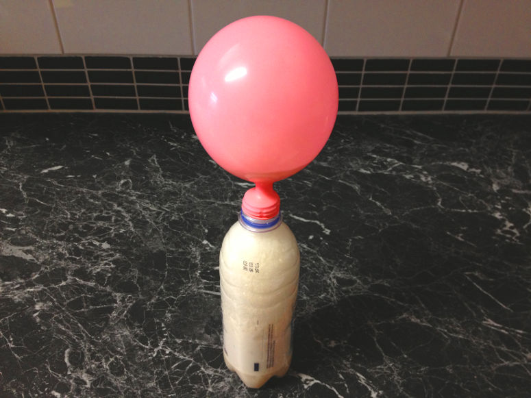 När jäst äter socker frigörs gasen koldioxid. Koldioxiden tar upp stor plats och spänner ut flaskan och ballongen. Den syns även som bubblor i vätskan.Lång förklaring