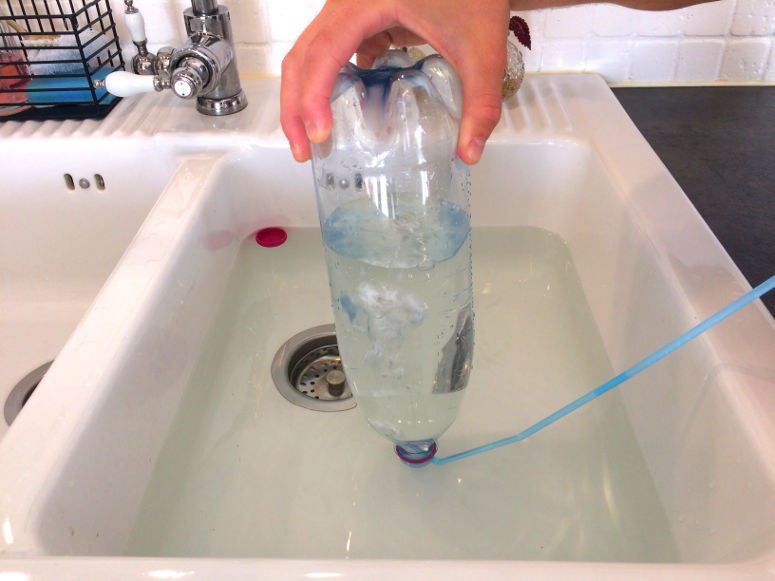 - 1 stor flaska eller dunk med kork (för ett litet barn räcker 1,5 l, för en vuxen krävs 5 l)