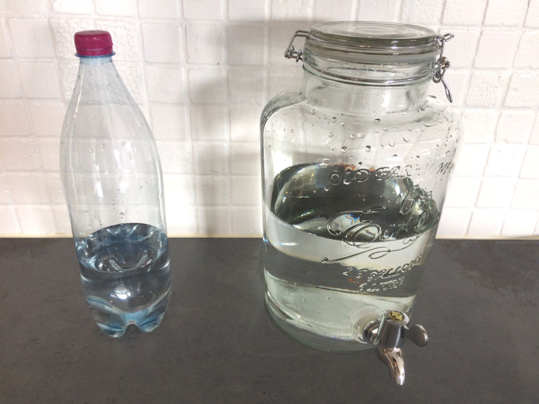 Är du vuxen behöver du en större behållare än en vanlig PET-flaska. En femlitersdunk är perfekt.