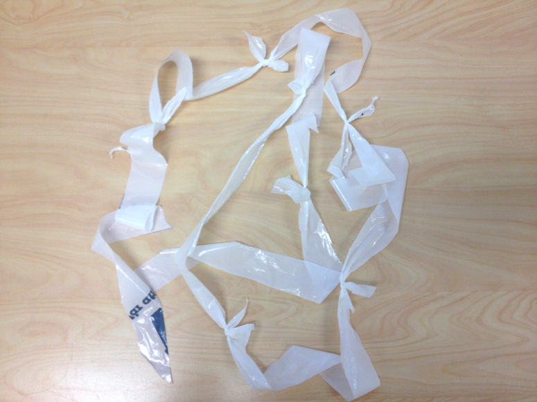 - 1 st normalstor plastpåse från mataffären (eller annat plaststycke som är minst 30 x 30 cm)