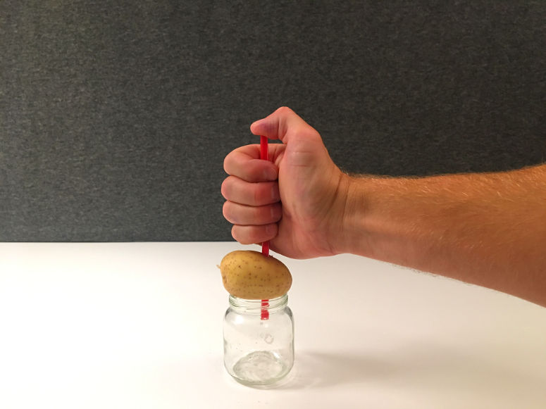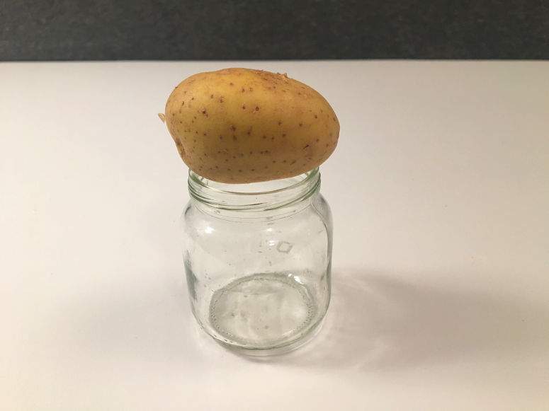 Detta experiment kräver ordentlig övervakning. Sugröret i detta experiment orsakar skada om det träffar någon kroppsdel. Välj också en glasburk där potatisen täcker hela dess öppning. Detta för att förhindra att du slår på glaset.Steg 1