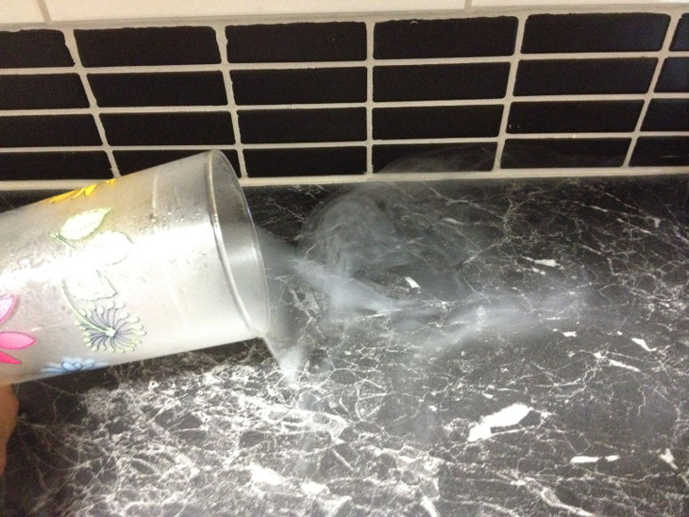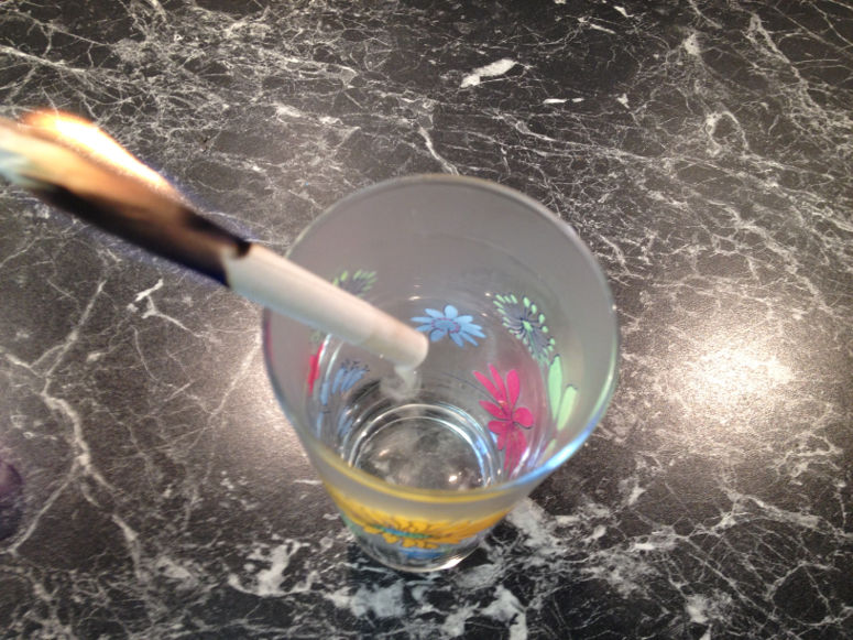 - Kan du på något sätt få ner röken i vatten? Vad händer då?