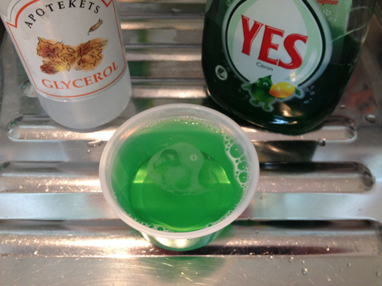 Skapa en såpbubbla som flyter på osynlig koldioxid. Detta experiment handlar om kemiska reaktioner, densitet, polära och opolära ämnen, och lite till.