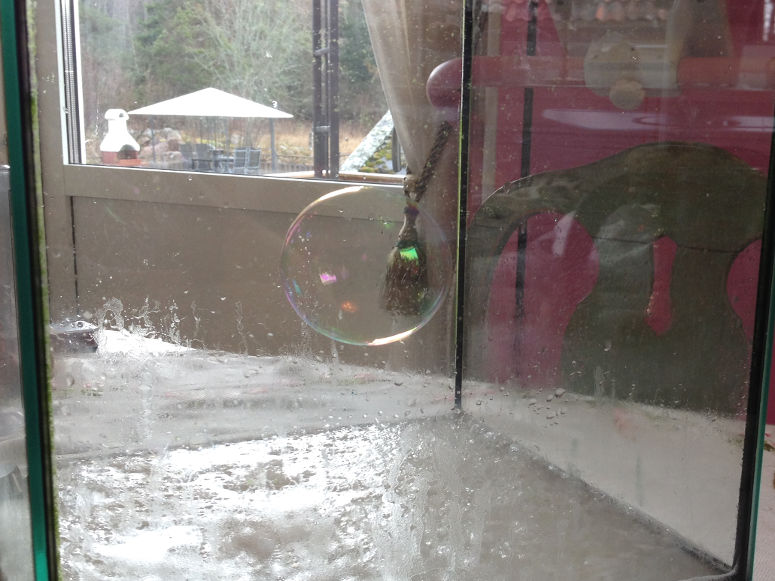 - Vad händer om du försiktigt blåser ner i behållaren när en såpbubbla ligger där?