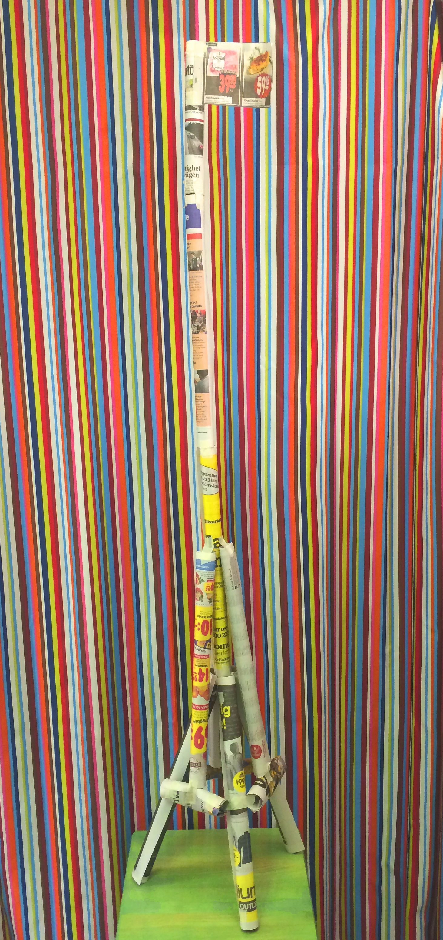 Bygg ett så högt torn du kan av endast en tidning och en tejprulle. Detta experiment handlar om hållfasthet, tyngdpunkt och understödsyta.