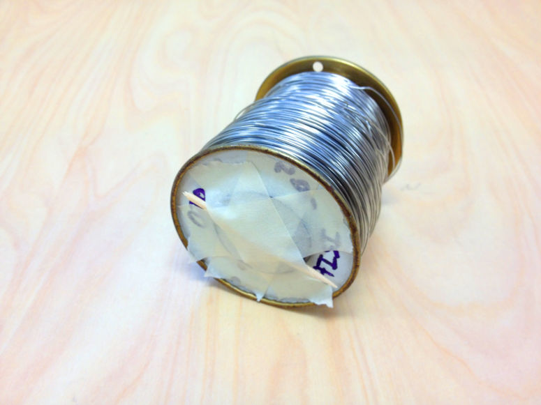 - 1 st tung trådrulle (en vanlig sytrådsrulle är alldeles för lätt - en rulle med ståltråd är perfekt!)