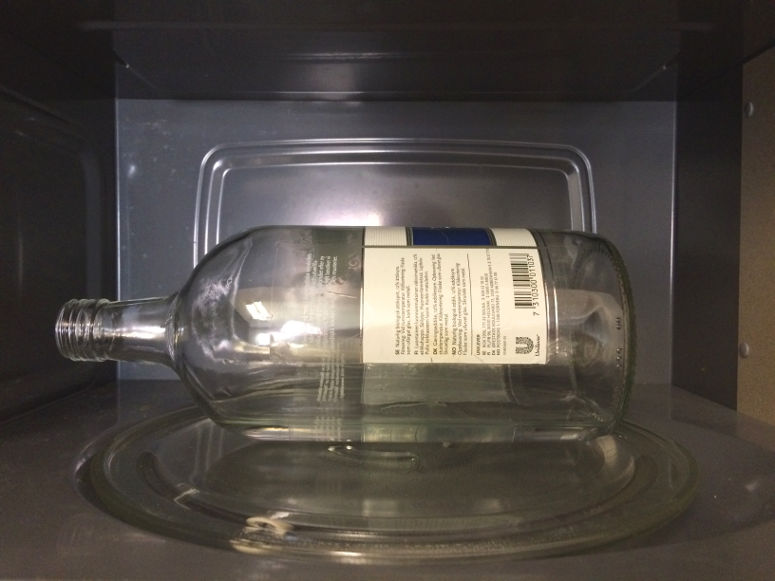 - Ha alltid ett stadigt grepp om flaskan och rikta dess öppning bort från dig, ändå från när ni öppnar dörren till mikrovågsugnen.