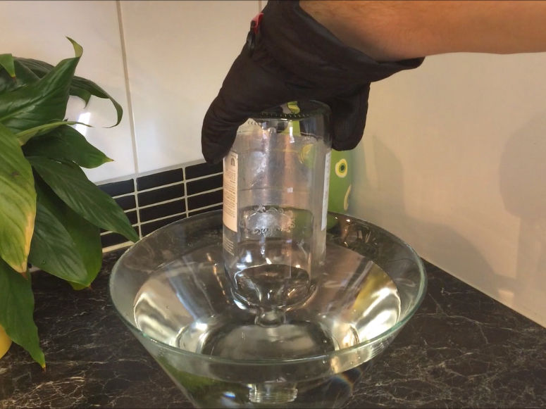 Se hur en till synes tom flaska helt plötsligt blir full med vatten. Det här experimentet handlar om tryck och aggregationstillstånd.
