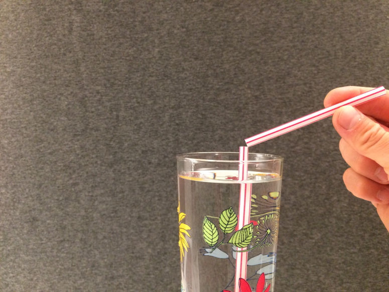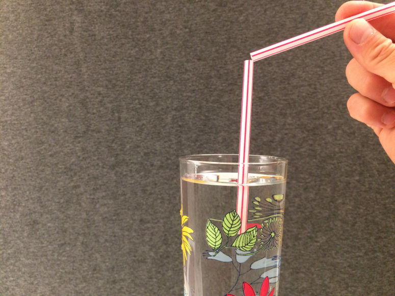 Tillverka en vissla av ett sugrör. Detta experiment visar hur ljud i form av toner kan uppstå.